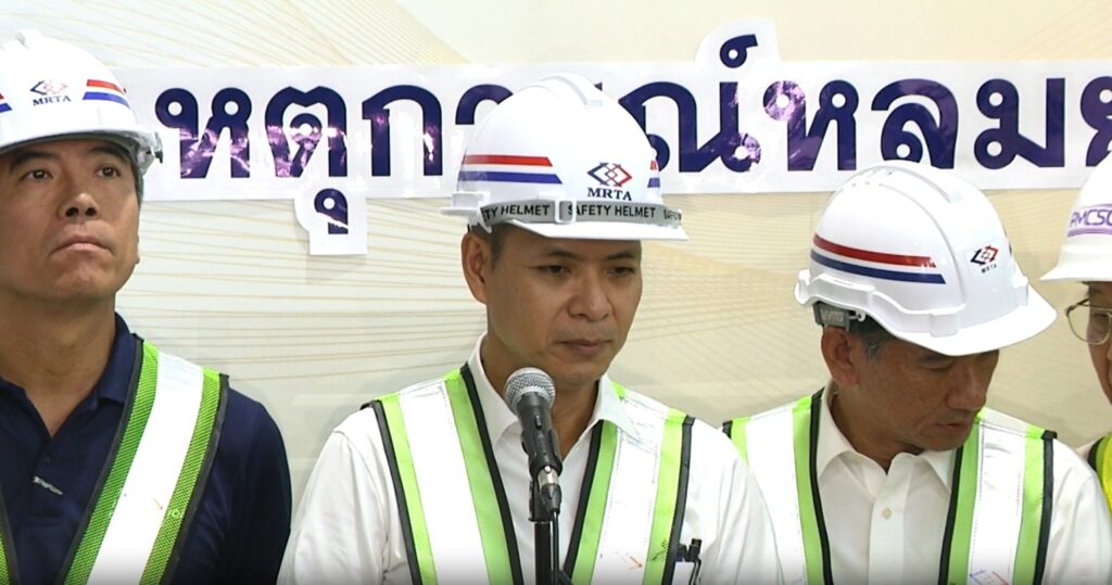 The Governor of the Mass Rapid Transit Authority of Thailand (MRTA) Kajphajon Udomthamphakdi confirmed that a ruptured water pipe at a depth of three meters likely pushed soil and water pressure down into the adjacent under-construction subway tunnel and station, triggering the significant subsidence.