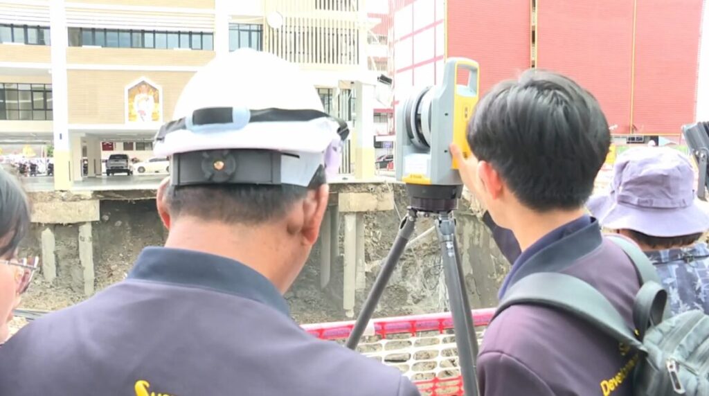 Safety concerns persist for the adjacent Samsen Police Station. The newly completed police station was scheduled to open next month before the sinkhole incident compromised its foundation. Engineers have deployed 3D laser scanning equipment to continuously monitor the building’s movement and tilt. Officials are worried that utility cables and power lines currently pulling on the structure could induce collapse, prompting officials to consider cutting these cables to eliminate the strain. The detailed data from the 3D scans is critical for determining if the station building is safe to retain.