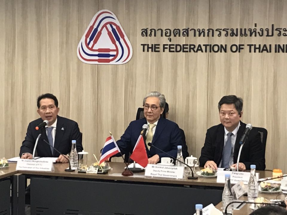 FTI chairman Supant Mongkolsuthree signed an agreement on information exchange and mutual business facilitation with Fang Lixu, chairman of the China Council for the Promotion of International Trade Guangdong Committee (CCPIT).