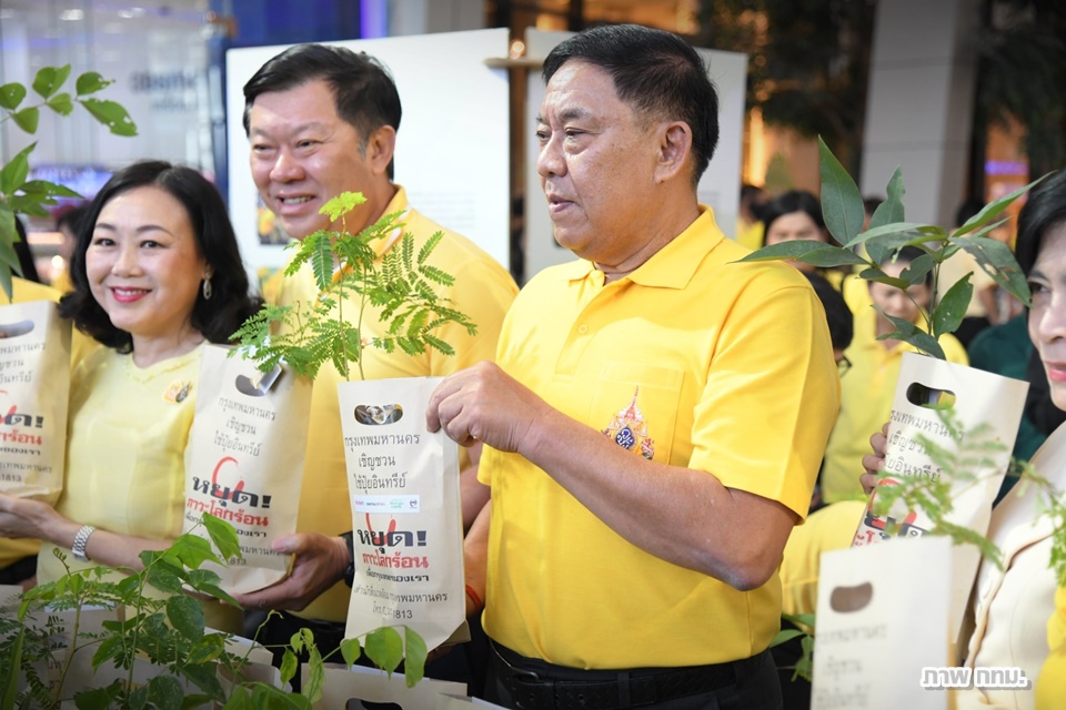 The governor said that the distribution would help reduce air pollution and improve the landscape beauty of the capital because the BMA was handing out the seedlings of yellow flowering plants that matched the birthday colour of His Majesty the King.