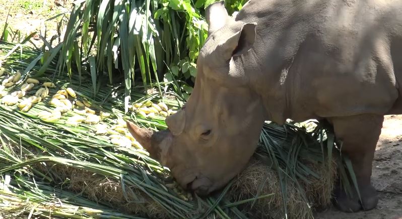 The star of the show enjoyed a buffet-styled feast with arrangement of his favourite foods, including fresh hay and banana.