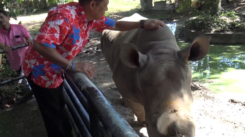 Celebrated on September 22 until September 27, World Rhino Day activities at Songkhla Zoo have drawn a large crowd of visitors, especially children who are allowed to not only get close look at Knot but also scratch his back with brush.