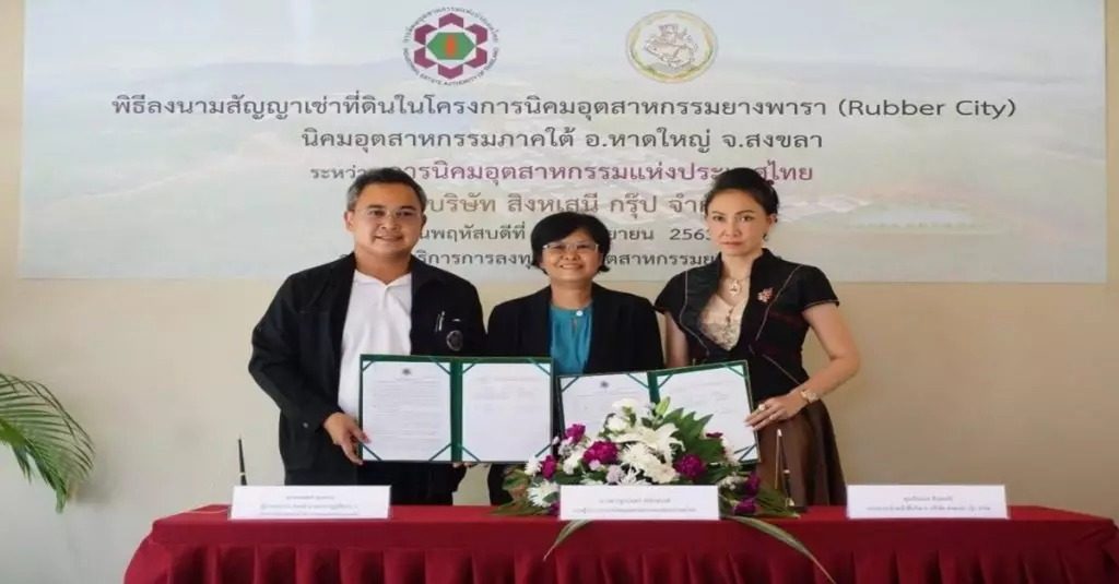 Somchint Pilouk, governor of the Industrial Estate Authority of Thailand (IEAT), said IEAT signed a contract to lease out 83 rai of land in the Rubber City in Chalung sub-district of Hat Yai district to Singhaseni Group.