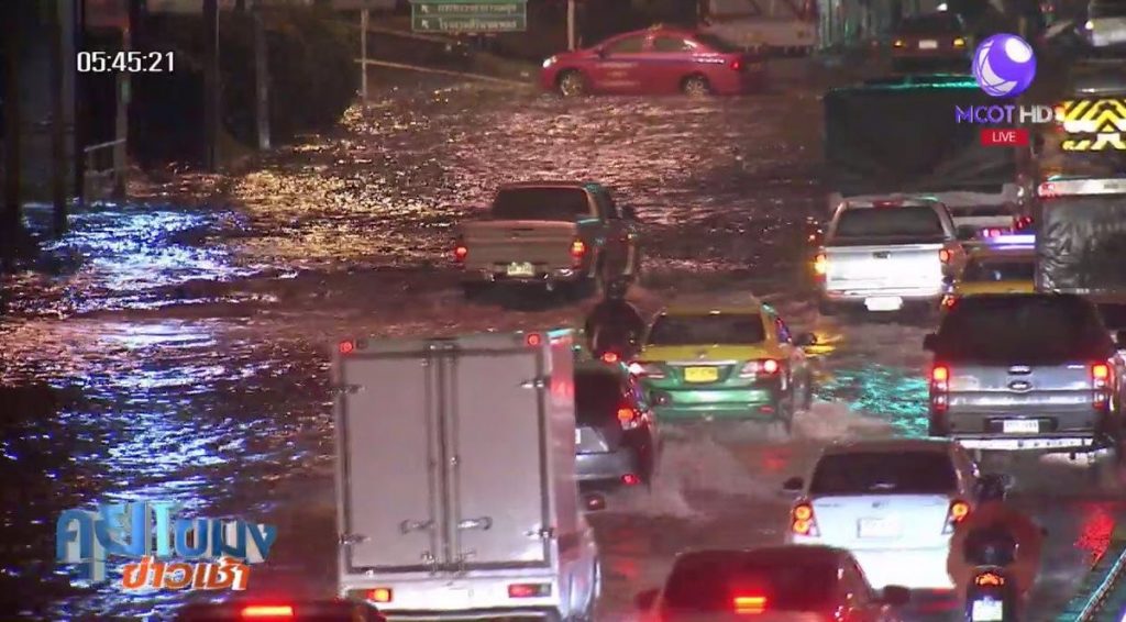 Pol Maj Gen Jirasan said that if it rained more than 60 millimeters per hour, flood would usually happen on Chaeng Watthana, Ratchadaphisek, Phahon Yothin, Pracharat Sai Song, Rajavithi, Phaya Thai, Sri Ayutthaya, Chan, Sathu Pradit, Suan Phlu, Suwinthawong, Phetkasem, Soi Mooban Sethakit and Bang Khun Thian-Chai Talay roads. (TNA)