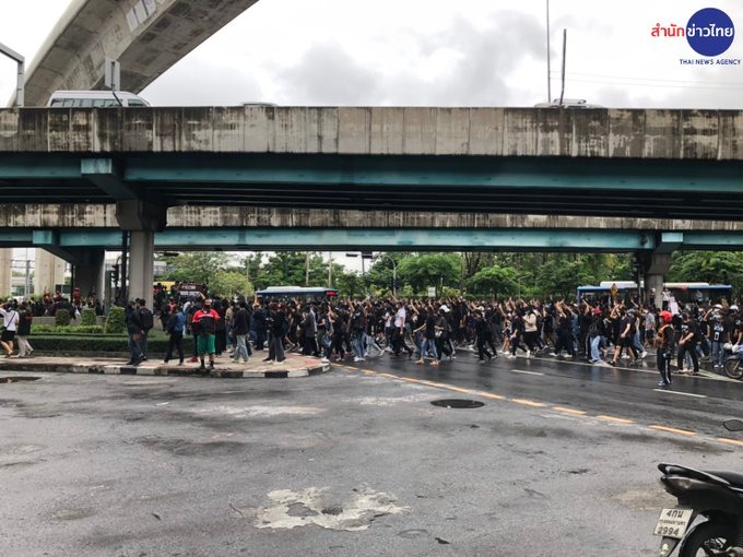 The protest groups invited demonstrations through social media to join the rally at the location closest to them: Hayaek Lat Phrao, Udom Suk or Wong Wian Yai.