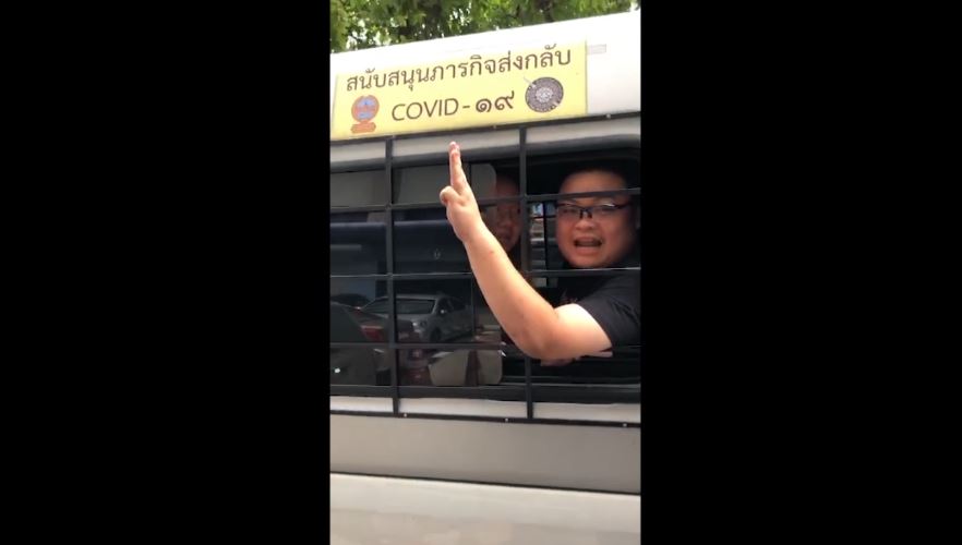 Parit Chiwarak and Panusaya Sithijirawattanakul were taken to Bangkok Remand Prison after the Criminal Court refused their bail requests.