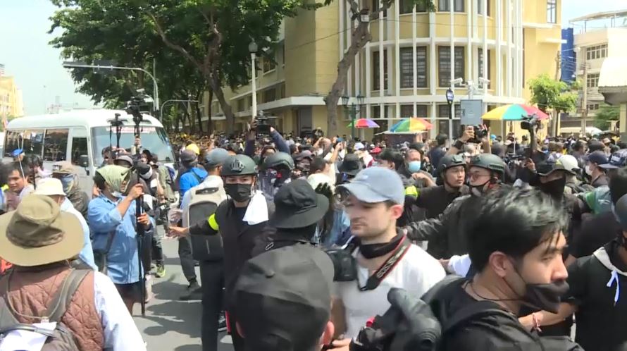 The two defendants led thousands of protesters breaking into Thammasat University and Sanam Luang on September 19. They also had leading roles in many other rallies calling for Prime Minister Prayut Chan-o-cha’s resignation and monarchical reform.