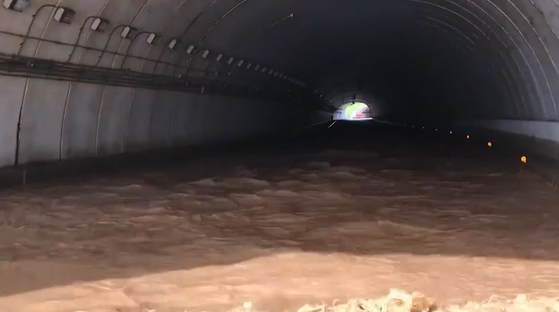 The tunnel submerged in one-meter-deep floodwater on Sunday before it was reopened Monday morning.