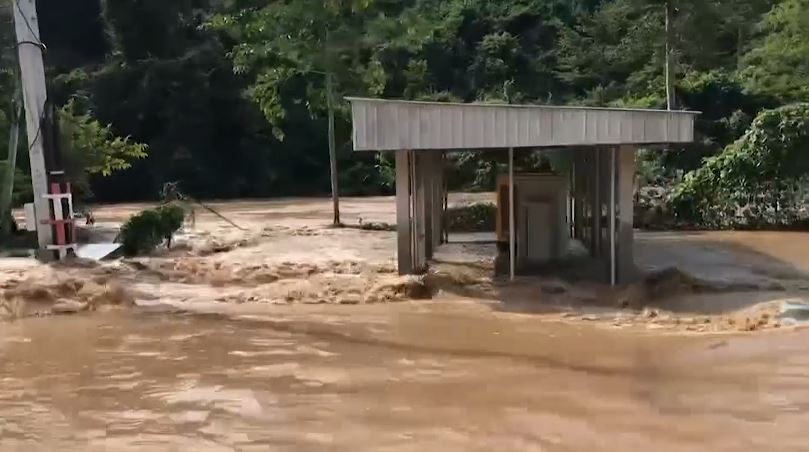 A park ranger barely escaped the flashflood to higher ground before being safely rescued on Monday morning. Many houses in Buraprom village were completely swept away by the flashflood. Properties of luxury resorts have been damaged. (TNA)
