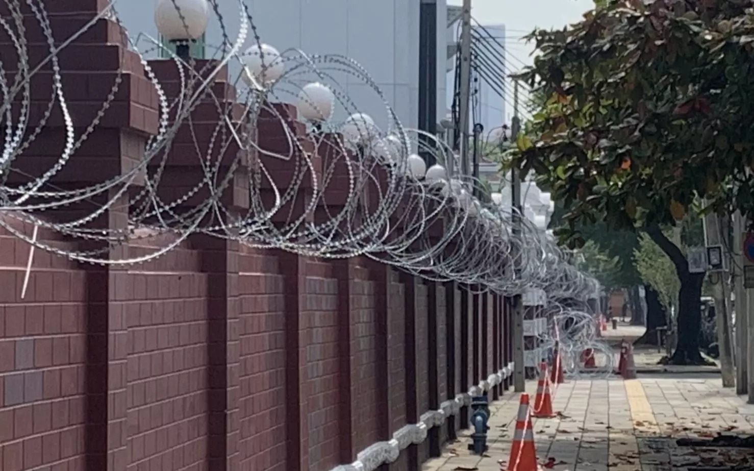 Barbed wire has been installed on the walls of the Crown Property Bureau on Phitsanulok Road. Signs reading the boundary of a royal compound were erected on Phitsanulok Road and adjacent Luk Luang Road. (TNA)