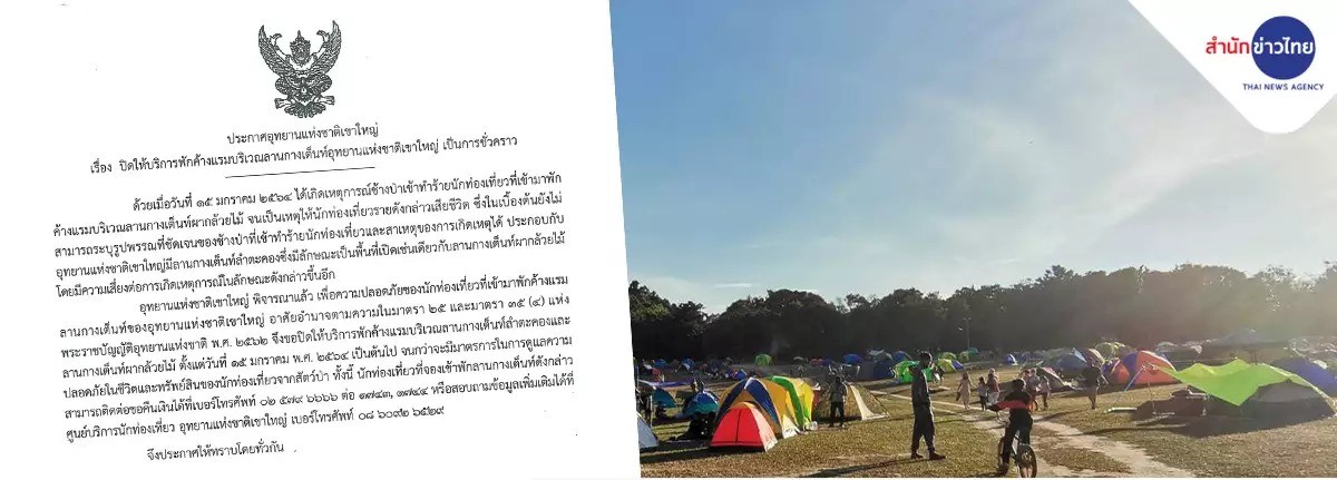 Pha Kluai Mai and Lam Ta Khong campsites were closed for park rangers to observe the behaviors of wild elephants after the incident. (TNA)