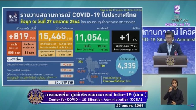 BANGKOK, Jan 27 (TNA) – The Center for COVID-19 Situation Administration reported 819 new COVID-19 cases and one more death who was a bed-ridden man.