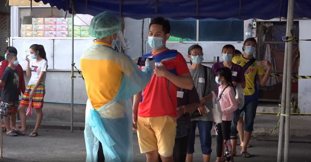 PATHUM THANI, Feb 15 (TNA) – Disease control workers are seriously conducting community testing at Suchart and Pornpat markets in a bid to control COVID-19 in the province.