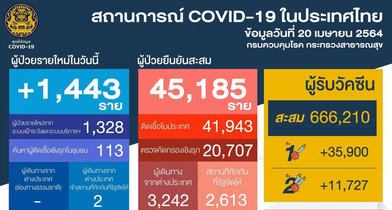 BANGKOK, April 20 (TNA) – Four more people died of COVID-19 as the new wave of infections linked to entertainment places spread the disease to 71 provinces, according to the Center for COVID-19 Situation Administration.
