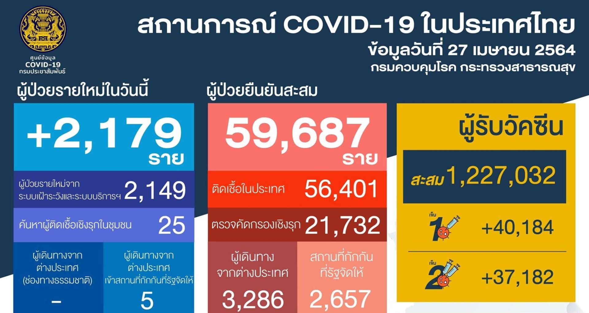 BANGKOK, April 27 (TNA) – Thailand reported a new daily record of 15 new coronavirus deaths and 2,179 more daily cases on Tuesday.