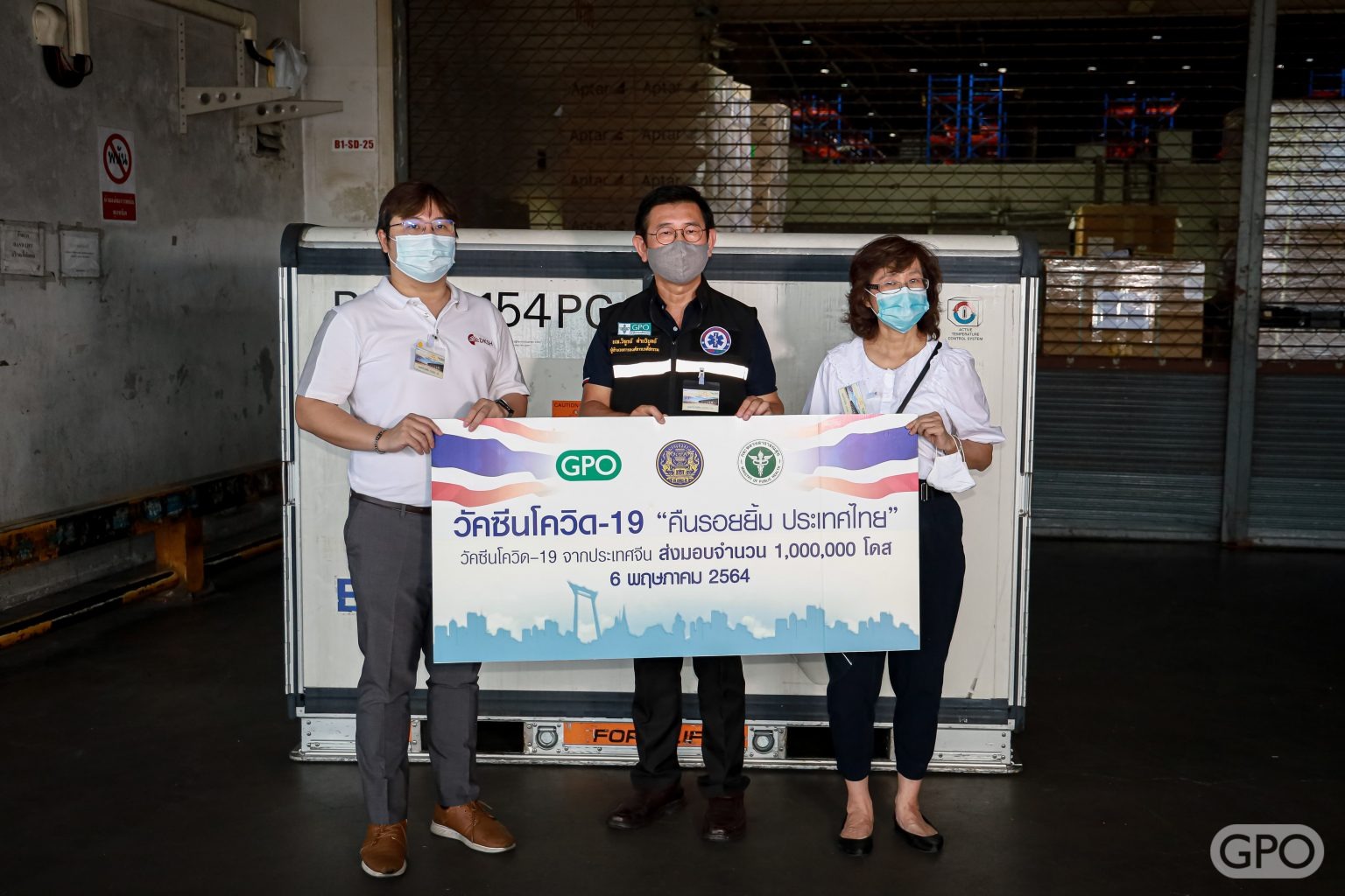 Dr Withoon Danwiboon, managing director of the Government Pharmaceutical Organization, accepted the vaccine doses at a customs free warehouse zone of Suvarnabhumi airport. The doses were delivered on an airplane of Air China Airline and were in six refrigerated containers that kept storage temperatures at 2-8 degrees Celsius to maintain the quality of the vaccine.