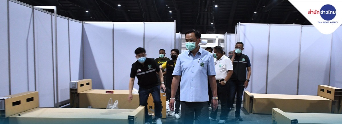 Inspecting the new facility at the IMPACT convention and exhibition center in Muang Thong Thani housing estate on Monday, Deputy Prime Minister and Public Health Minister Anutin Charnvirakul said he was satisfied with the progress in the construction of the field hospital.
