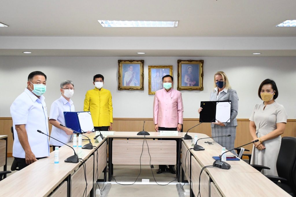 Present at the signing ceremony were Deputy Prime Minister and Public Health Minister Anutin Charnvirakul, Deputy Public Health Minister Sathit Pitutecha and Dr Kiattiphum Wongrajit, permanent secretary for public health. (TNA)