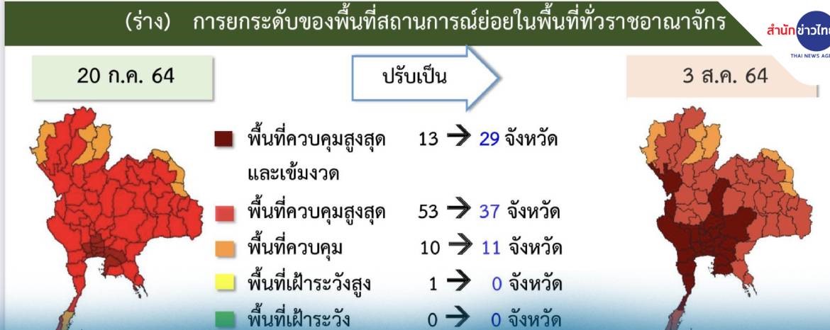 The maximum and strict disease control measures expanded to 16 more provinces namely Kanchanaburi, Tak, Nakhon Nayok, Nakhon Ratchasima, Prachuap Khiri Khan, Prachin Buri, Phetchaburi, Phetchabun, Rayong, Ratchaburi, Lop Buri, Sing Buri, Samut Songkhram, Saraburi, Suphan Buri and Ang Thong.