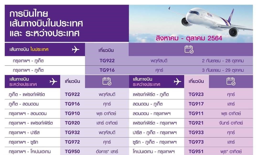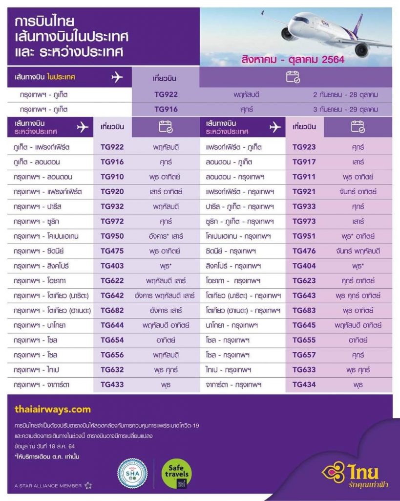 BANGKOK, Aug 19 (TNA) – Thai Airways International (THAI) announced to resume international and domestic flight operations during the August – October period.