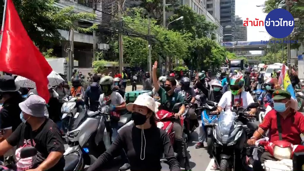 BANGKOK, Aug 20 (TNA) – Anti-government protesters traveled in their “car mob” to three embassies to file complaints on government responses to rallies and COVID-19 vaccines.