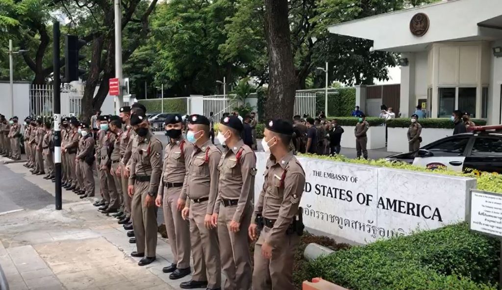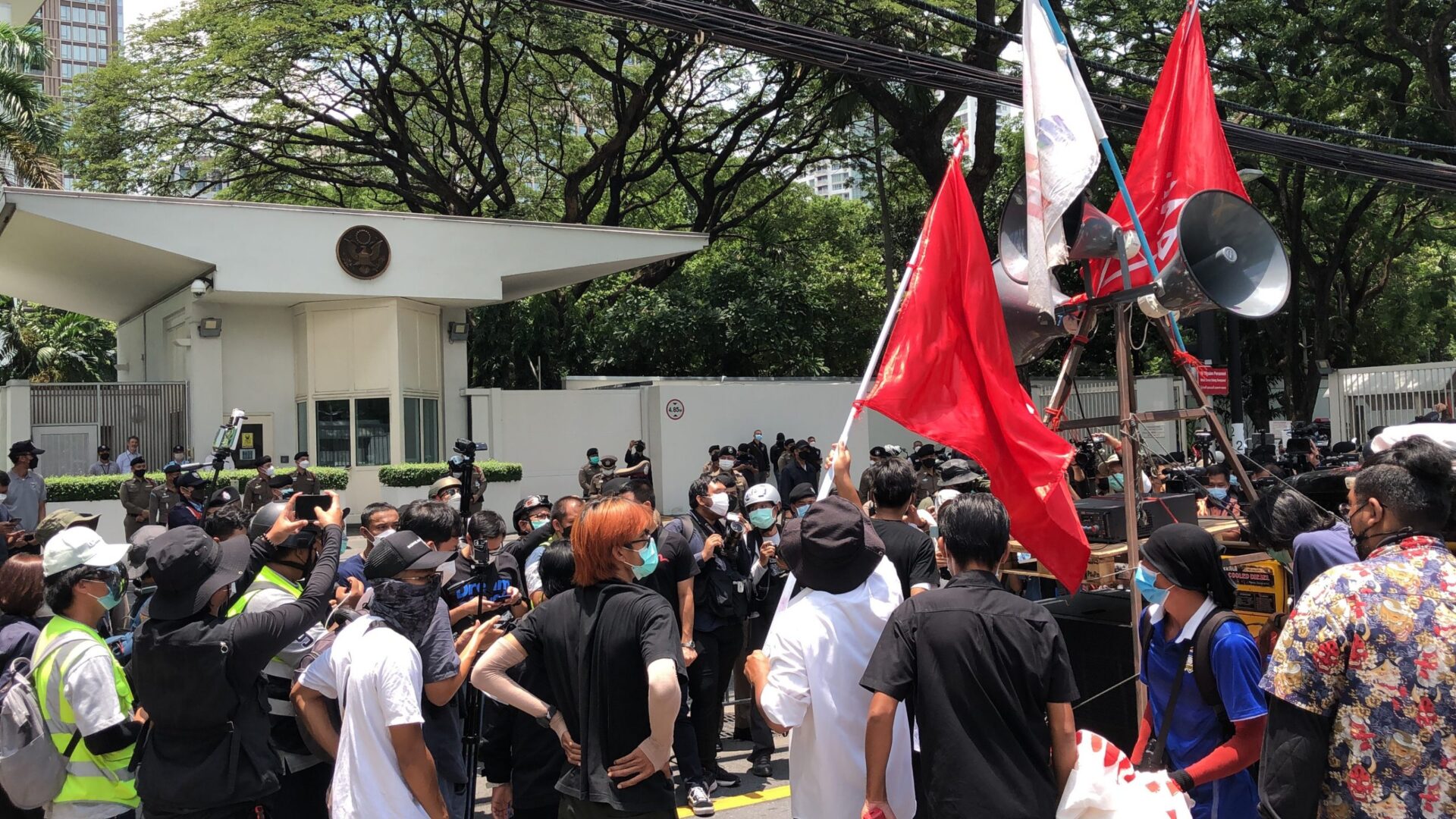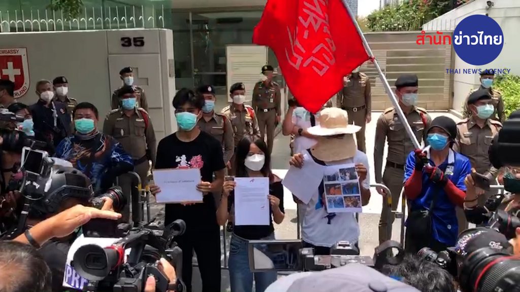Leaders of the protesters invited supporters via the “thalufah” Facebook page to first gather at the Victory Monument at 10am. Then they moved to the Swiss embassy on Wireless Road.