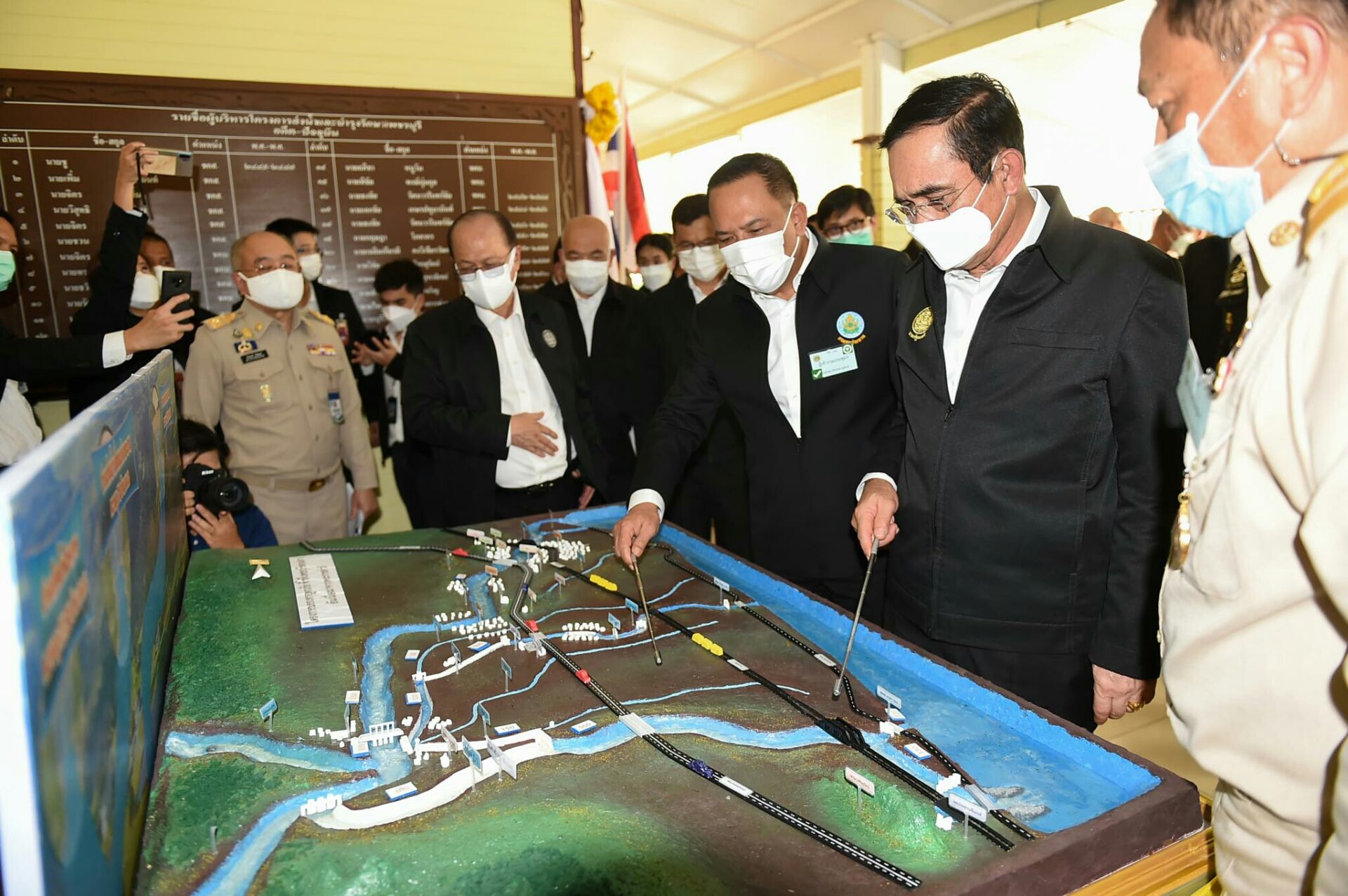 At 12.30pm the prime minister went to the Phet dam in Phetchaburi to inspect water management in the Phetchaburi river basin. He also followed up assistance for local flood victims.