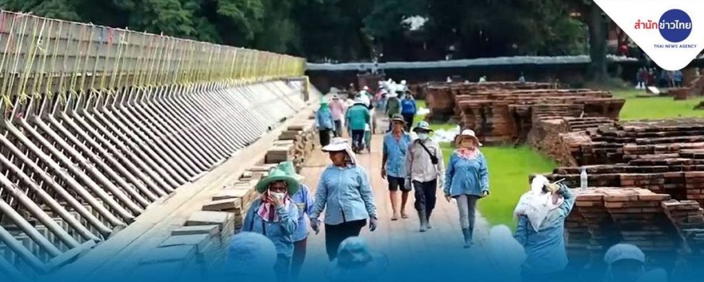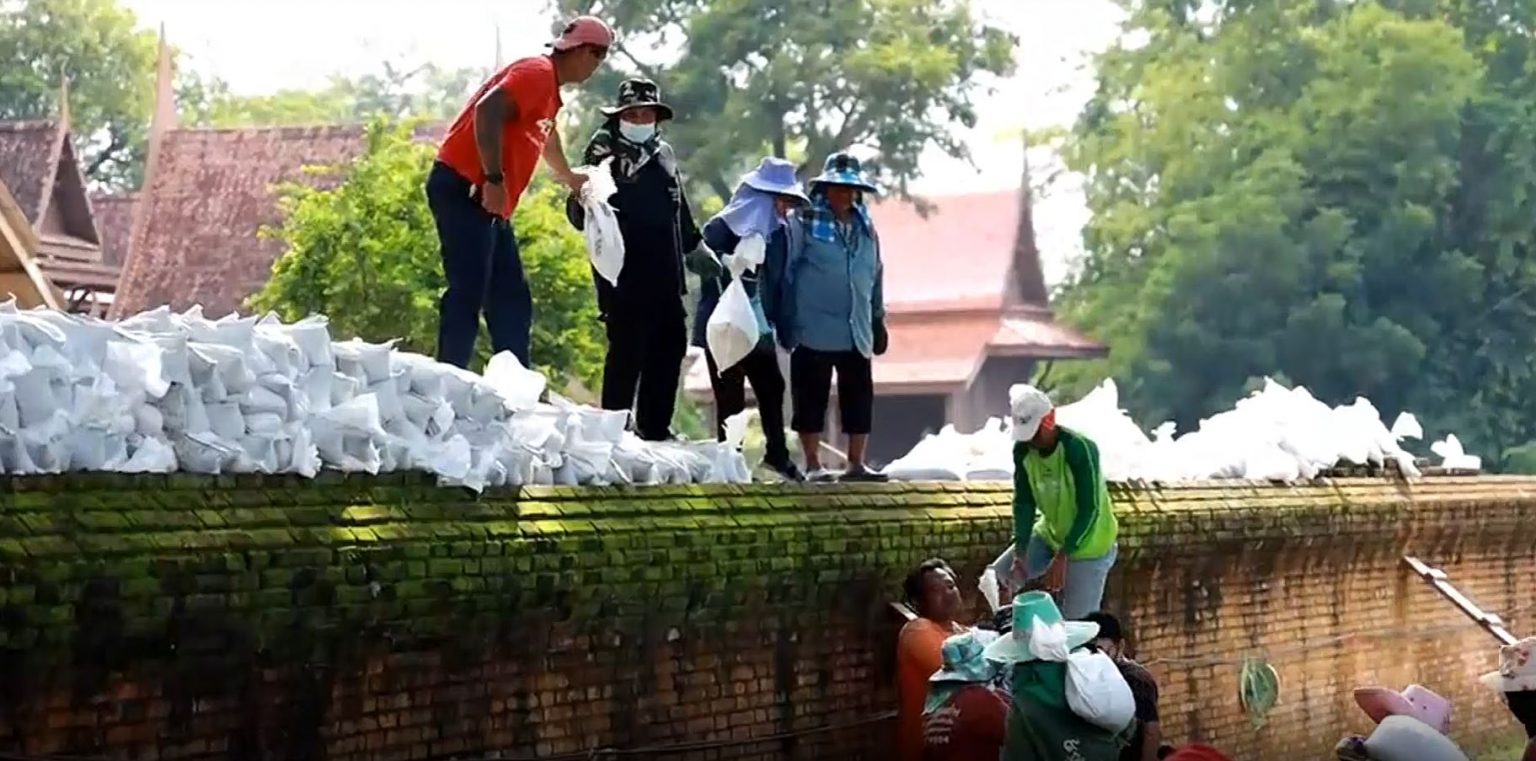 AYUTTHAYA, Oct 5 (TNA) – The Fine Arts Department mobilized its workers to raise floodwalls to protect archaeological sites as the levels of Chao Phraya and Pa Sak Rivers were rising.
