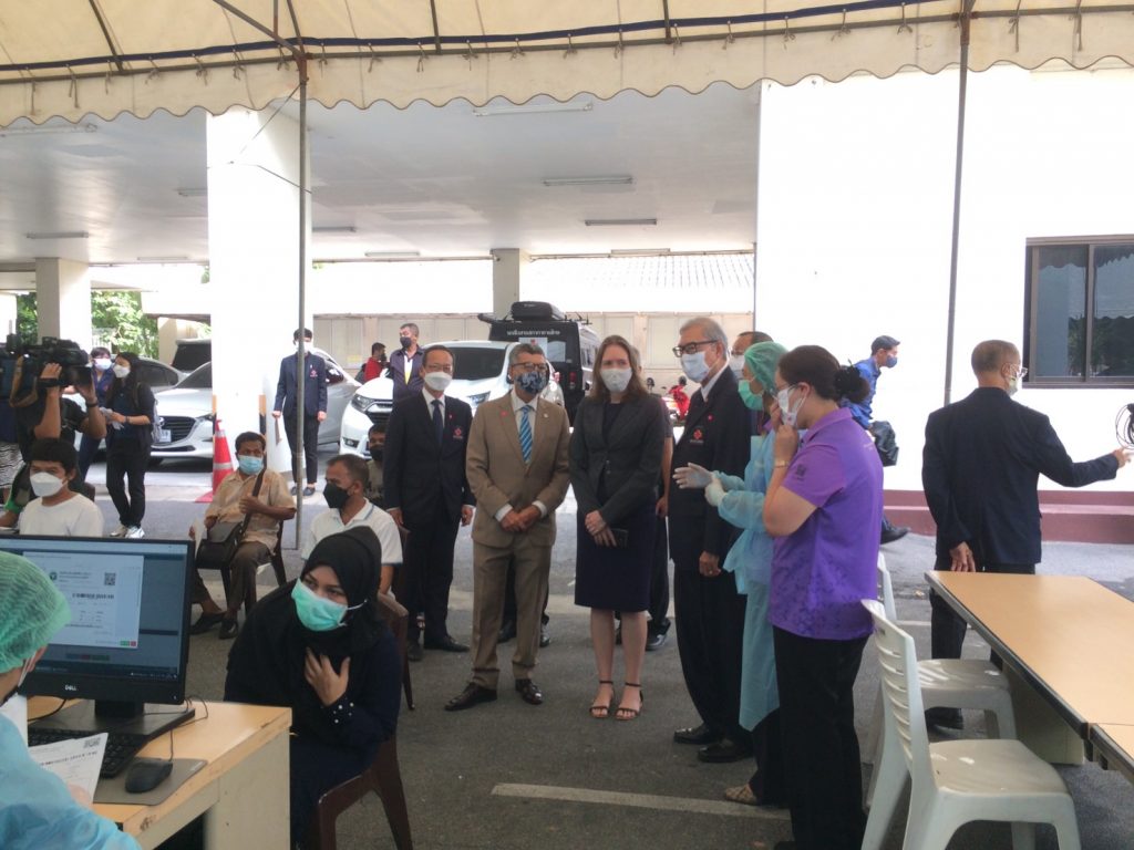 Migrants of many nationalities visited the Relief and Community Health Bureau of the Thai Red Cross Society in Pathumwan district for the inoculation with the COVID-19 vaccine made by Sinopharm. The Thai Red Cross Society offered the vaccine as the first jab for migrants in Bangkok and Samut Prakan.