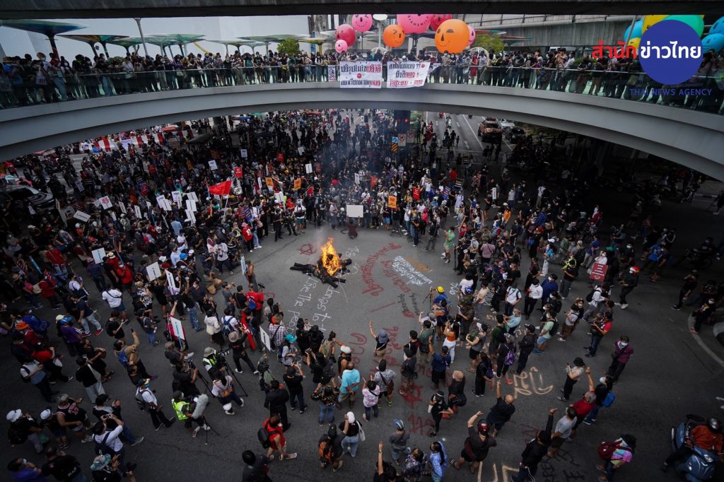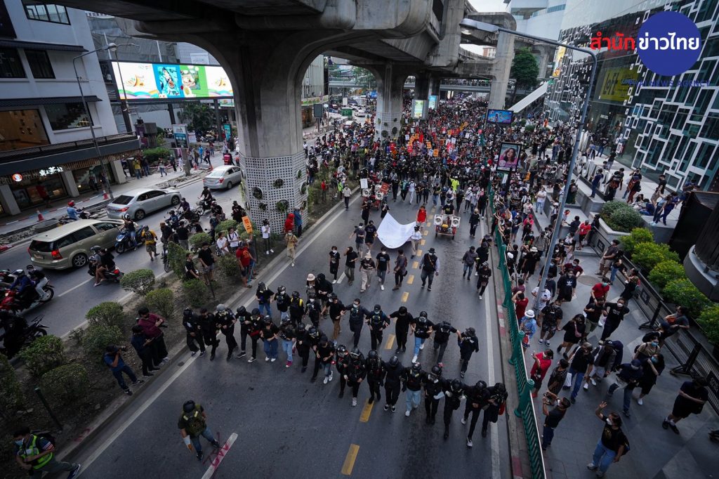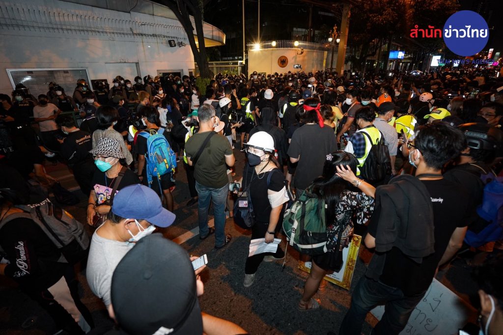 BANGKOK, Nov 15 (TNA) – Protesters on Sunday marched from Pathumwan intersection. One person was injured during a clash with riot police on their way to the German embassy.
