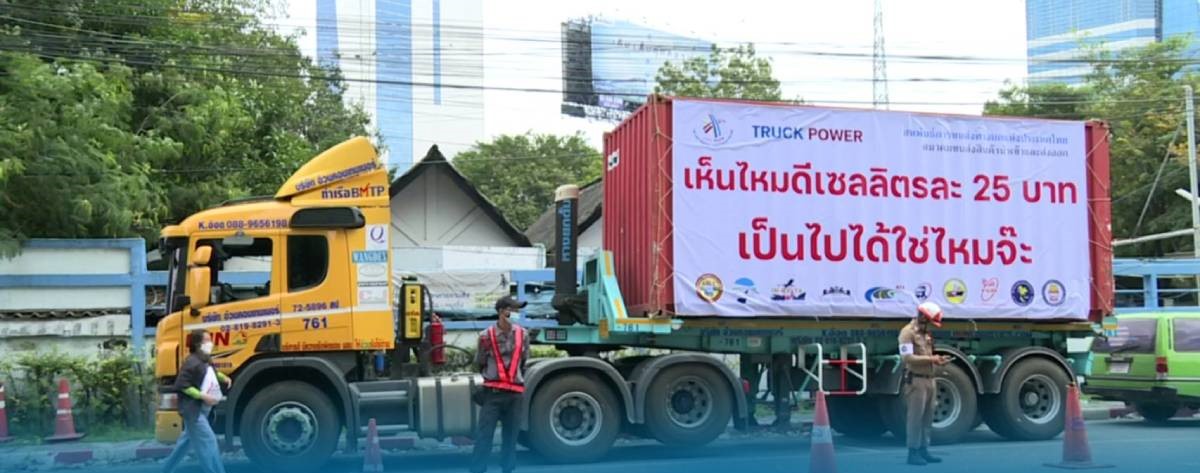 In its “Truck Power Season 2” rally, the Land Transport Federation of Thailand deployed more than 500 trucks to express the problems of truck operators related to the rising diesel price and the big trucks would arrive at the Energy Ministry on Vibhavadi Rangsit Road to emphasize their standpoint.