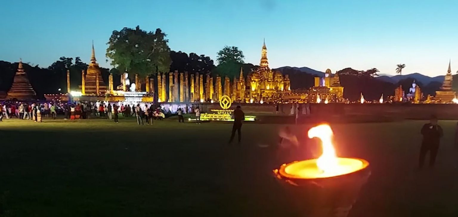 Last night, 11,191 people entered the historical park for the Loy Krathong festival. Its most interesting highlight was the Sukhothai Miracle of Light show where tens of thousands of candles were lit around Wat Mahathat and an old-style market. (TNA)