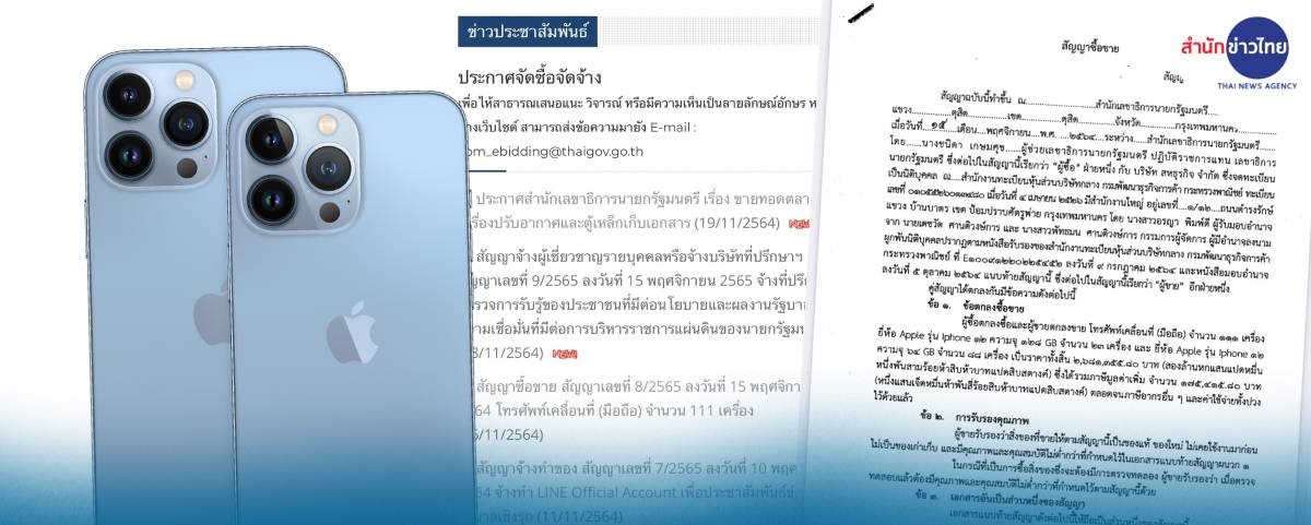 BANGKOK, Nov 24 (TNA) – The secretariat of the prime minister spent 2.6 million baht on 111 iPhone devices because the procurement was due to replace old phones, according to an advisor to the prime minister.