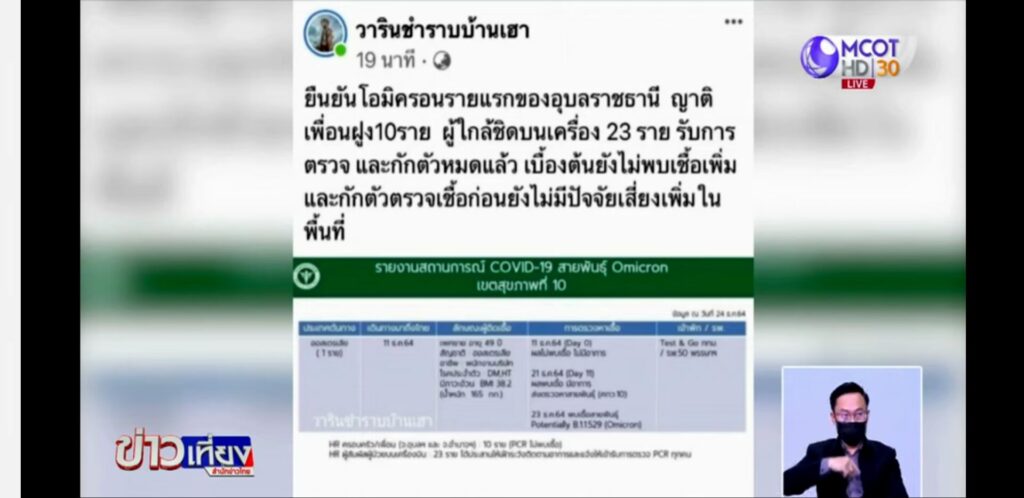 UBON RATCHATHANI, Dec 27 (TNA) – The northeastern province recorded its first Omicron case, an Australian man who arrived on Dec 11 through the Test & Go entry program and met his girlfriend in Amnat Charoen province.