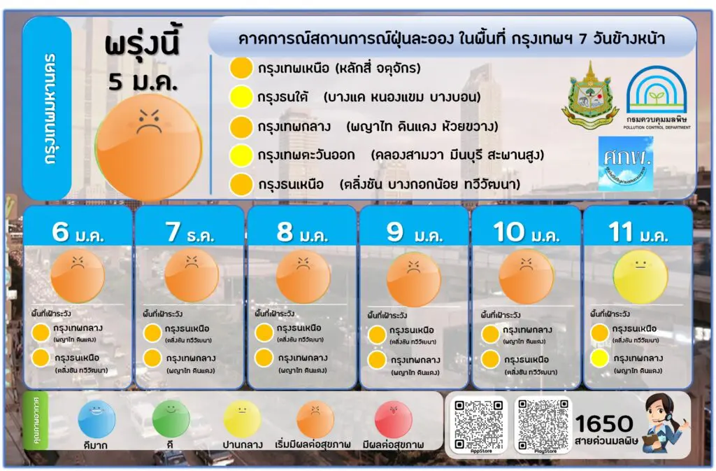 BANGKOK, Jan 4 (TNA) – The Pollution Control Department warns thick fine dust will blanket Greater Bangkok on Jan 5-10 due to air stagnation.