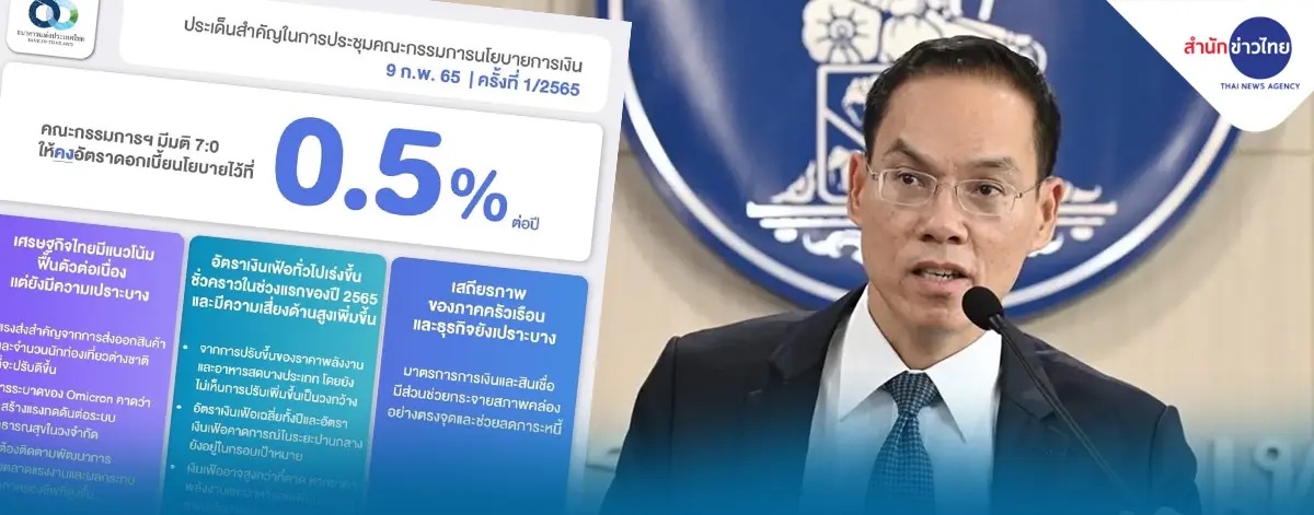 BANGKOK, Feb 9 (TNA) – The Bank of Thailand’s Monetary Policy Committee on Wednesday voted unanimously to maintain the policy rate at 0.50 percent.