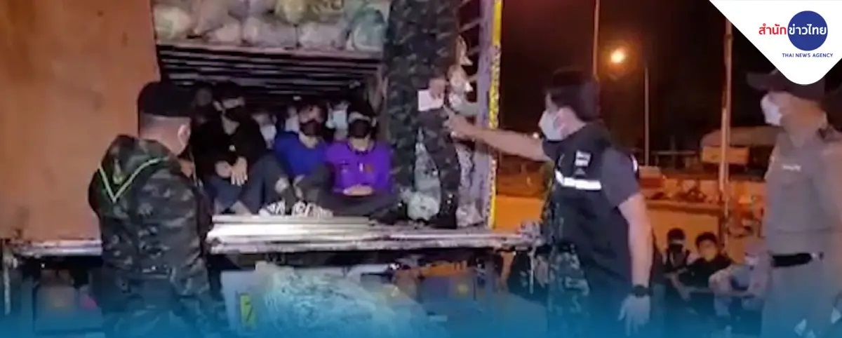 The arrest happened at the checkpoint on Mae Sot-Tak Road at about 11pm on March 13. Soldiers, police and administrative officials found all the 53 illegal migrants hiding in a compartment covered with bags of eggplants, coriander and cabbage. The compartment was about one meter wide and stretched along the tray of the truck.