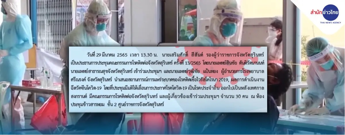 SURIN, March 30 (TNA) – The communicable diseases committee of the northeastern province resolved to postpone its declaration of COVID-19 as an endemic disease from April 1 to after the Songkran festival.