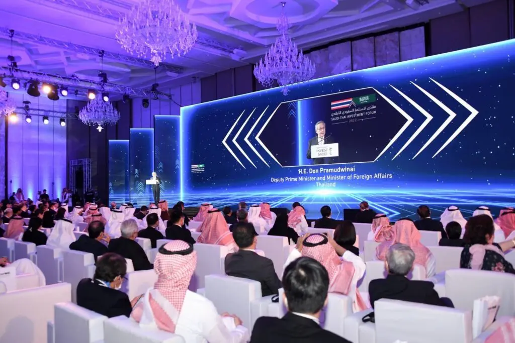 Sanan Angubolkul, chairman of the Board of Trade of Thailand, said that Saudi Arabia’s Ministry of Investment hosted the Saudi-Thai Investment Forum where Saudi Arabian Foreign Minister Prince Faisal bin Farhan Al Saud welcomed the Thai delegation led by Deputy Prime Minister and Foreign Minister Don Pramudwinai.
