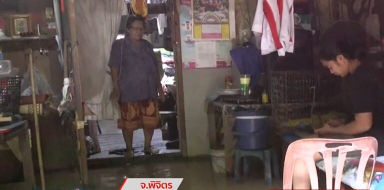 People in the Talad Tai community in Thap Khlo sub-district of Thap Khlo district in Phichit quickly moved belongings to high grounds as flood levels rose fast after heavy rains had continued for a few days. A runoff from the Phetchabun mountain range flooded about 100 houses in the community.