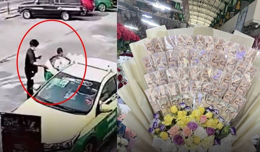 The woman posted on her Facebook page that Narongsak, 45 allegedly stole the bouquet, made of the banknotes worth 50,000 baht on Feb 21 after she placed an order for the cash bouquet and the owner of a flower shop at the Pak Khlong Talat Mai market hired Narongsak via the application GrabExpress (car) to deliver the cash bouquet to the customer in Pathum Thani.