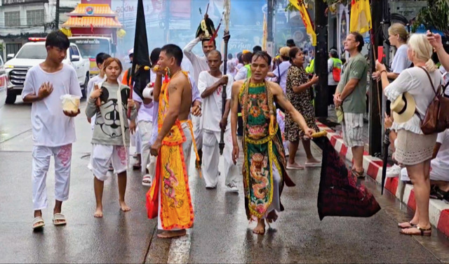 PHUKET, Oct 16 (TNA) – Locals and foreign tourists participate in the annual Vegetarian Festival in Phuket, which runs from October 14 to 23.