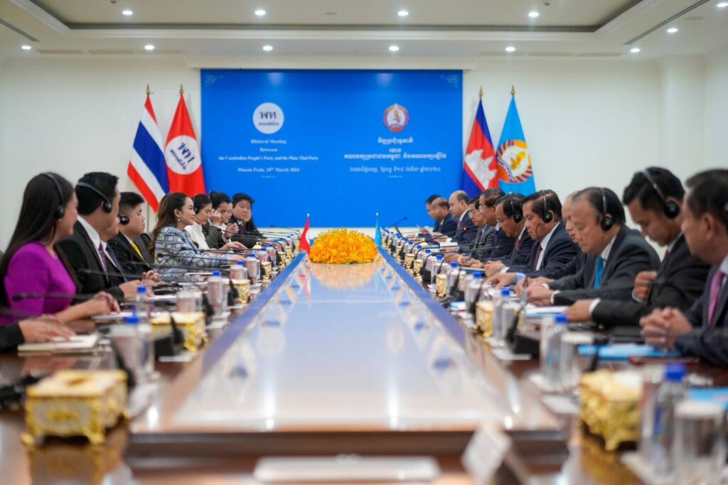 PHNOM PENH, March 19 (TNA) – The ruling Pheu Thai Party leader Paetongtarn Shinawatra led members of her party to meet President of Cambodian People’s Party (CPP) Hun Sen as both sides exchanged political perspectives on Monday.
