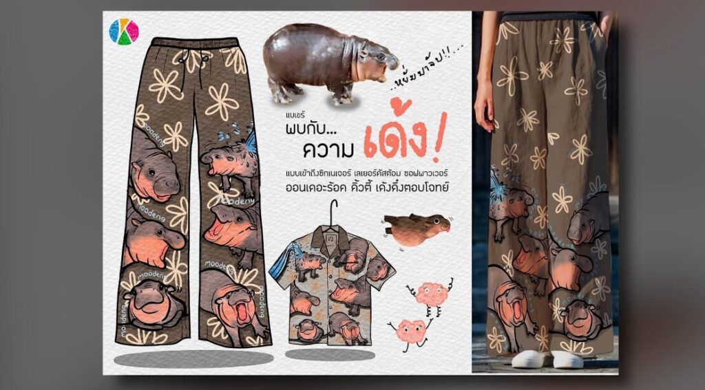The zoo has capitalized on Moo Deng’s popularity by preparing to launch a limited edition pair of pants, featuring the adorable hippo. The pants’ design has already garnered substantial interest from fans, requesting merchandise featuring other animals at the zoo. -819 (TNA)