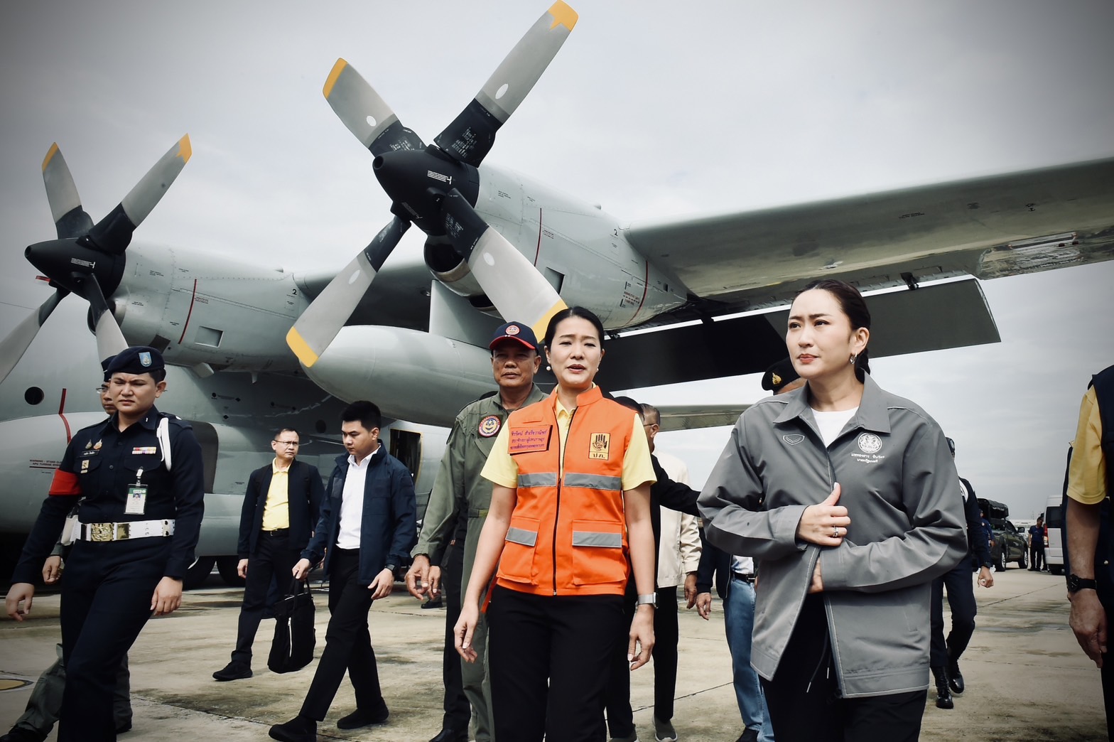 The Prime Minister, accompanied by Deputy Prime Ministers Phumtham Wechayachai and Suriya Juangroongruangkit, flew from Bangkok to Mae Fai Luang International Airport to assess the flood situation firsthand.