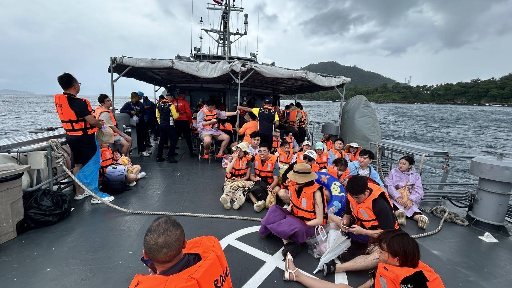 Naval Ship 111 of the Third Naval Area Command has come to the aid of these tourists who were unable to return to the mainland due to strong waves of 3-4 meters.