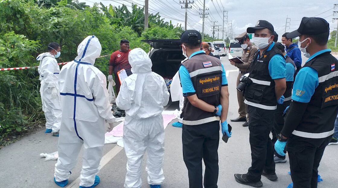 The victim, Thitirat, 47, was found dead in a grassy area along Huai Plu – Nakhon Chai Si Road. Relatives reported that she had picked up a male passenger for a trip to Nakhon Pathom on September 10 and subsequently lost contact.
