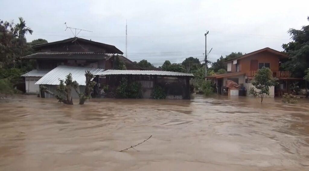 Flash floods from the mountains have inundated multiple villages in Mae Rim district, Chiang Mai province, affecting over 500 households. Although water levels have begun to recede in some areas, certain locations remain submerged under more than a meter of water.
