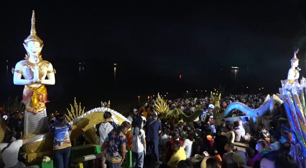 NONG KHAI, Oct 18 (TNA) – Thousands of locals and tourists flocked to the northeastern province of Nong Khai on Thursday to witness the Mythical Serpent (Naga) Fireball phenomenon, which occurred annually during the end of the Buddhist Lent.