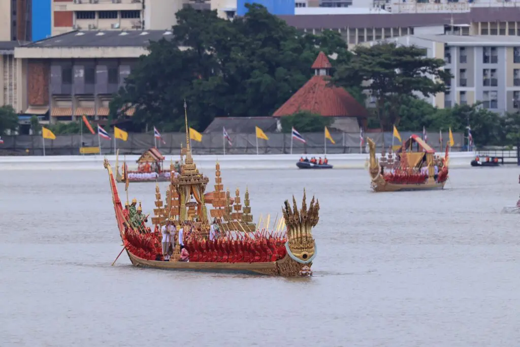 The vibrant and ornate royal barges, adorned with intricate carvings and gold leaf, slowly made their way along the 4.2-kilometer route, captivating onlookers.